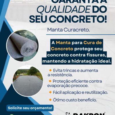 A Manta para Cura de Concreto é um geotêxtil não-tecido de alta eficiência, desenvolvido para controlar a evaporação da água durante o processo de cura do concreto. Essa tecnologia mantém a umidade ideal na superfície concretada, garantindo uma secagem uniforme e prevenindo trincas, fissuras e retrações indesejadas.