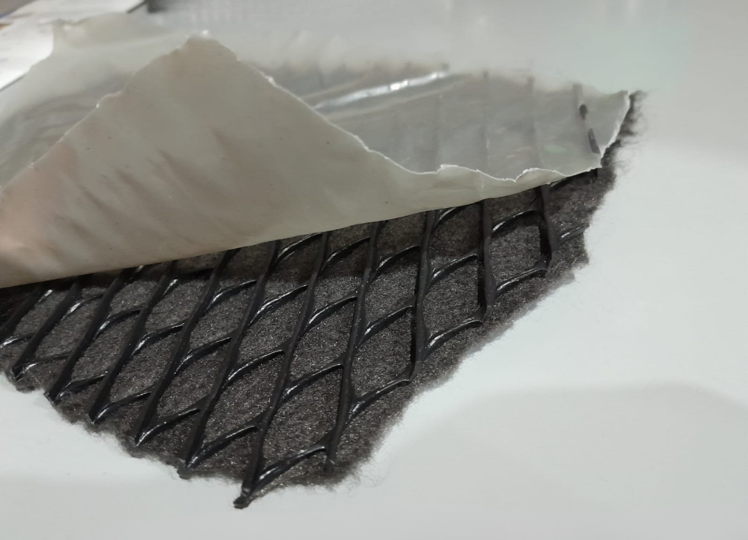 O GEOCOMPOSTO DRENANTE é fabricado a partir da combinação de uma face de geotêxtil não-tecido, núcleo com tela PEAD e uma face de filme impermeável de polietileno, para captar e filtrar a água.